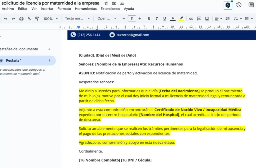 Pero respira hondo. Tramitar tu licencia no es un favor que pides, es un derecho tuyo y de tu bebé. Lo único que necesitas es dejarlo por escrito de forma impecable para que Recursos Humanos active tu pago y tu descanso sin ponerte trabas. Vamos a redactar esto rápido para que puedas dedicarte a lo importante: preparar la llegada.