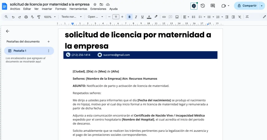 La maternidad es una etapa única y no deberías empañarla con estrés administrativo. Con esta carta de solicitud de licencia por maternidad, cumples con tu obligación legal y dejas las cuentas claras con tu empresa. Descarga el modelo, adjunta ese certificado médico y prepárate para lo que viene. ¡Mucho ánimo y felicidades!